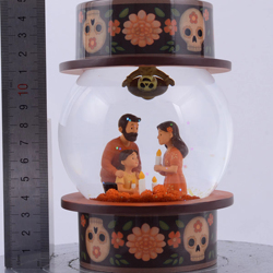 Globe d'eau squelette en polyrésine fait main OEM 100MM Nouvelle figurine religieuse pour l'intérieur Décoration d'Halloween peinte