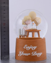 Globe à eau en résine de 100 mm, fait à la main, peint à la main, petite fille souffle des bougies, fait un vœu, pour la décoration de la maison et des festivals